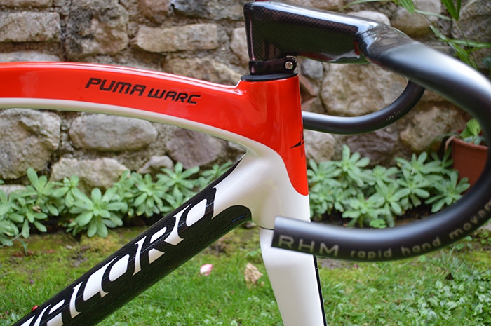 The Puma WARC features a one piece curved top tube, which links the head tube to the rear dropout: it increases the frame directionality, and sustains the rider weight, to increase the stability on the bend that allows a higher speed. This concept comes from MotoGP, instead of the typical trellis structure frame, since 2011.