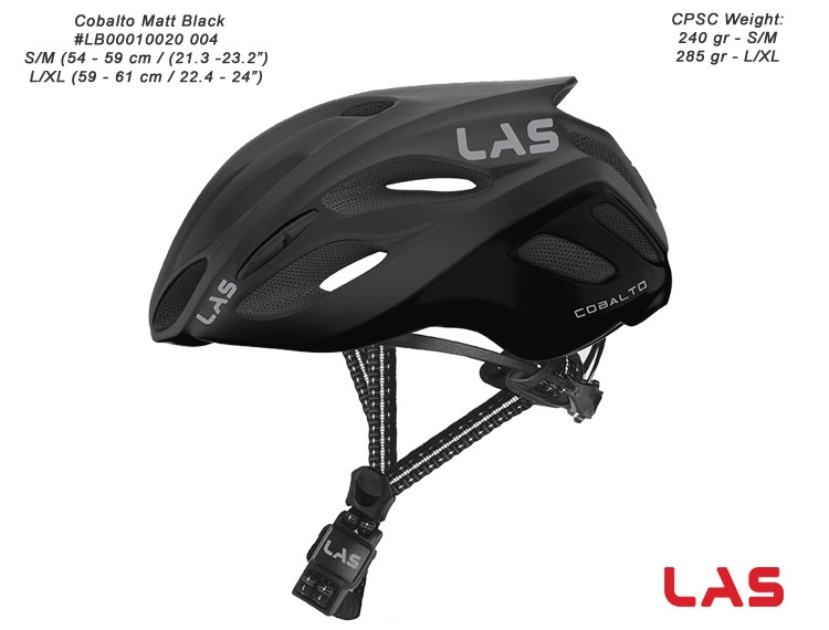Cobalto is designed and made in Italy at the LAS factory. Cobalto features 20 airflow vents strategically placed throughout the helmet to improve ventilation and aerodynamics. LDHR TECHNOLOGY provides lateral deformation high resistance and maximum resistance to lateral compression forces. Additional features: removable liner with an integrated anti-insect net keeps bugs out; magnetic buckle system; and Nano 3D micro-adjust dial to customize the fit to your head..